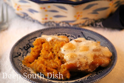Here in The South, the terms "sweet potatoes" and "yams" are used synonymously, as one and the same, though most often, when a recipe calls for "yams" they are often referring to canned sweet potatoes. If you look carefully, somewhere in small type on the label of yams, you'll usually find the words "sweet potatoes."I talk about all that in a bit more detail on my sweet potato post, which includes a number of ways to prepare them, from good ole baked to french fried, roasted, grilled and this yummy twice-baked version.