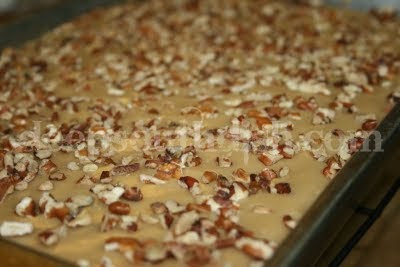 - Transfer to the prepared baking pan and bake at 350 degrees F for about 35 to 40 minutes, or until a toothpick inserted into the center comes back clean. Let cool completely.